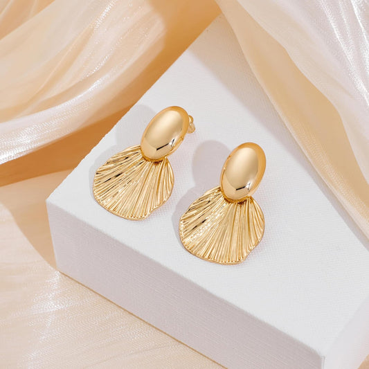 Chic Two-Tone Gold Chunky Fan-Shaped Dangle Earrings